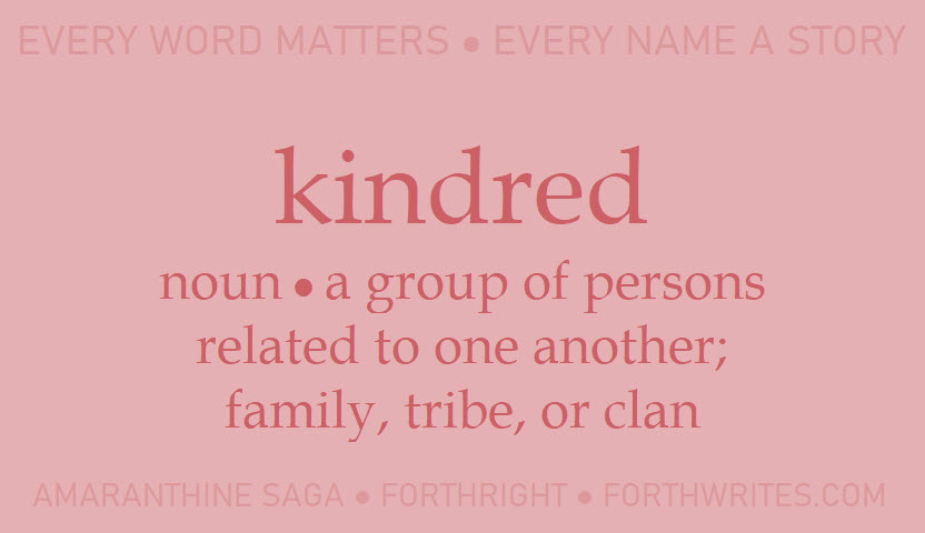 Kith and Kin. I borrowed from that old turn of phrase when giving the Amaranthine clans a bit of lingo. In English, kin (and kindred) refer to family, while kith refers to close friends or neighbors. You’ll find that when two Amaranthine meet and haven’t yet gone through the formalities of a proper introduction, they’ll address each other as “kindred.” This courtesy applies no matter which clan the Amaranthine hail from.