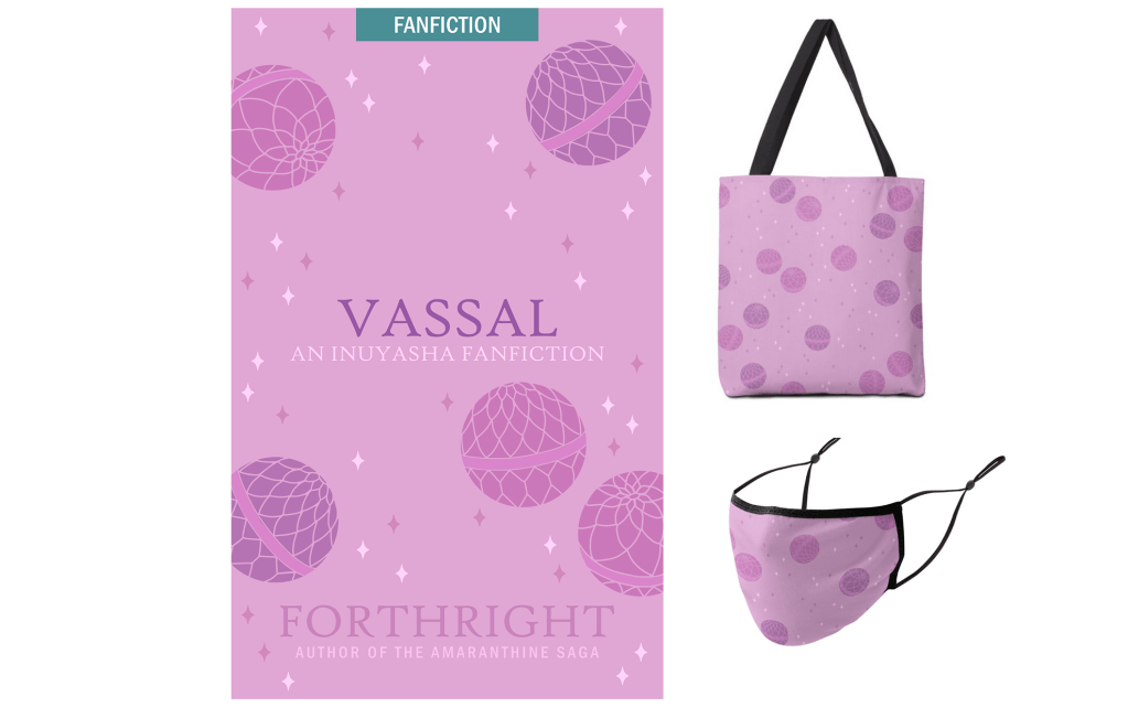 Temari Balls. We’ve added a new pattern to the shops. You can now get the temari balls featured on the cover for Vassal (one of my IY fanfics) printed on totes, journals, masks, notecards, etc.