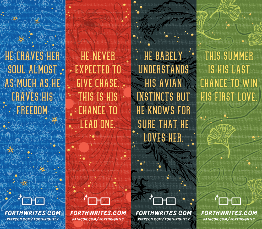 The set borrows from the spine ornamentation, since each design is unique. And on the flipside, we’re including each book’s tagline. We’ll complete the set for a future mailing. ::twinkle::