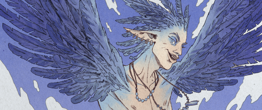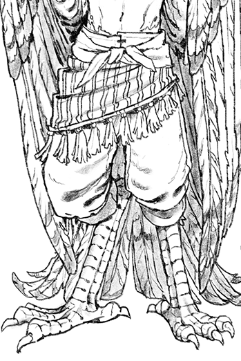 Harpy Design. During Travis Baldree’s recording session for Folk-Spelled, a couple of people spoke up, saying they couldn’t really picture my harpy character. So I shared this art from Ramage’s character sheet. My harpy characters are flight-capable, with large wings, trailing tail feathers, and crests that can rise or puff out, according to their moods.