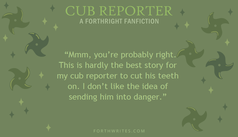 I’ve been asked (again and again) to post my fics to AO3 (An Archive Of Our Own), which is where all the cool kids hang out these days. I did claim a profile, which is “forthrightly” since someone audaciously snagged my penname ahead of me. Here’s a link. If the worst occurs, I’ll migrate my stories to AO3. Nothing of importance will be lost.