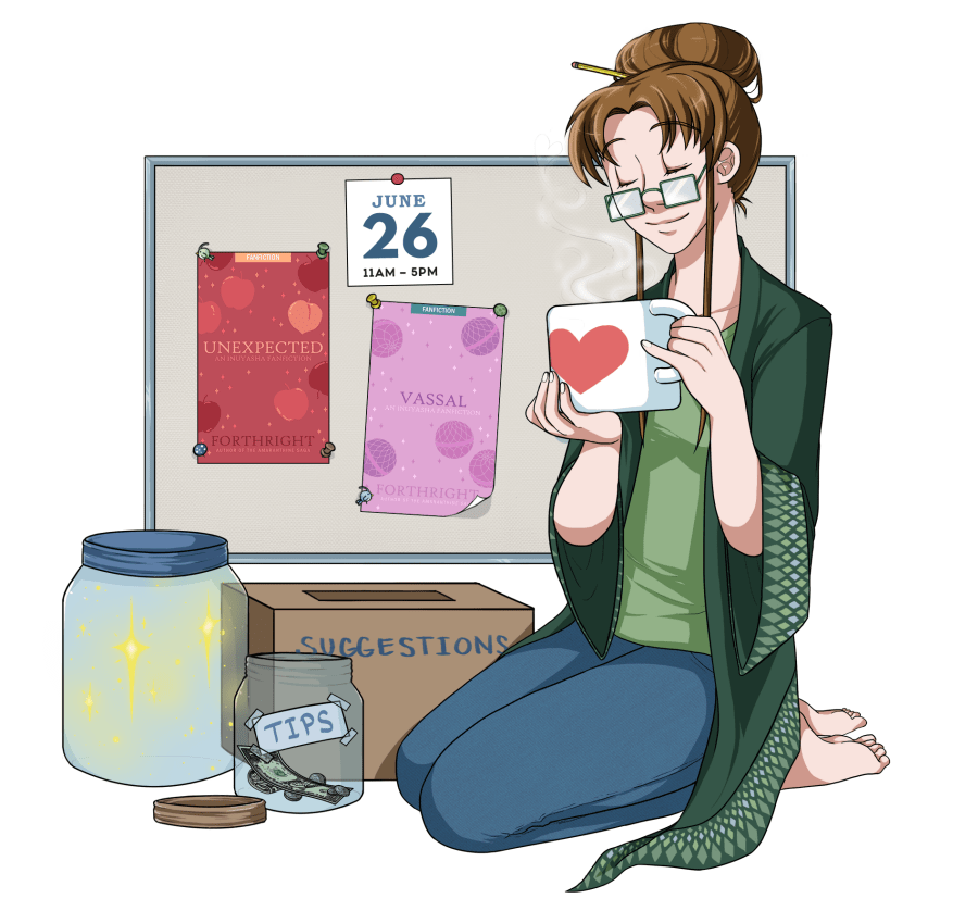 I recently secured a Ko-fi account, which I plan to use for fandom fun. Beginning next year (tentatively March 2021) I will host a monthly “event,” reminiscent of Drabble/Drawble Nights of old. And as a finale for the day, I’ll add a new chapter to Unexpected.