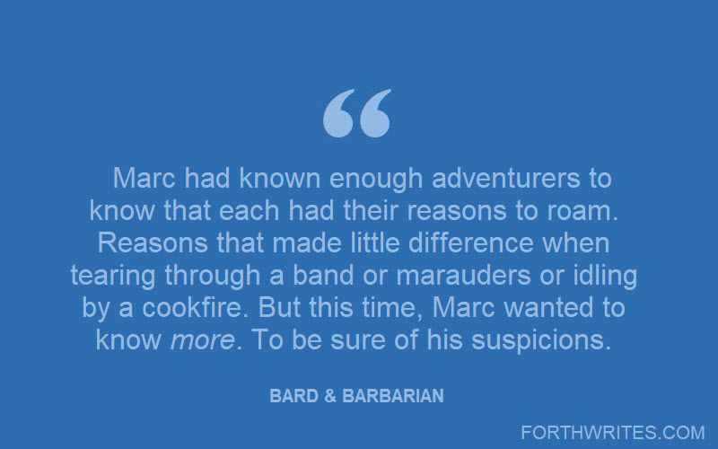 Updated! Bard & Barbarian has updated over on my Patreon with Ch26, “In and Out.” The party’s leader is eager to be off on what will become Imber’s first real adventure. Easy peasy, yeah?