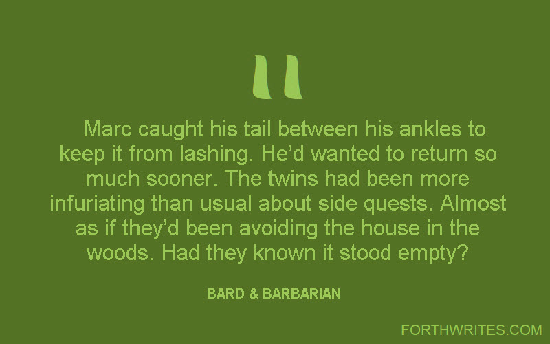 New Chapter. I’m easing my way into a quicker pace for posting new chapters of Bard & Barbarian, in part so I can stay ahead of Travis Baldree, who’s handling the narration of our tale. For those who haven’t taken note, Bard & Barbarian is an original story about two of the characters I played in my very first DnD campaign. What can I say … I got attached. So I’m giving them a story. Imber’s and Marc’s serialized adventure will undoubtedly be a stand-alone book one day, but if you want to be a part of their story while it’s unfolding, become a patron.