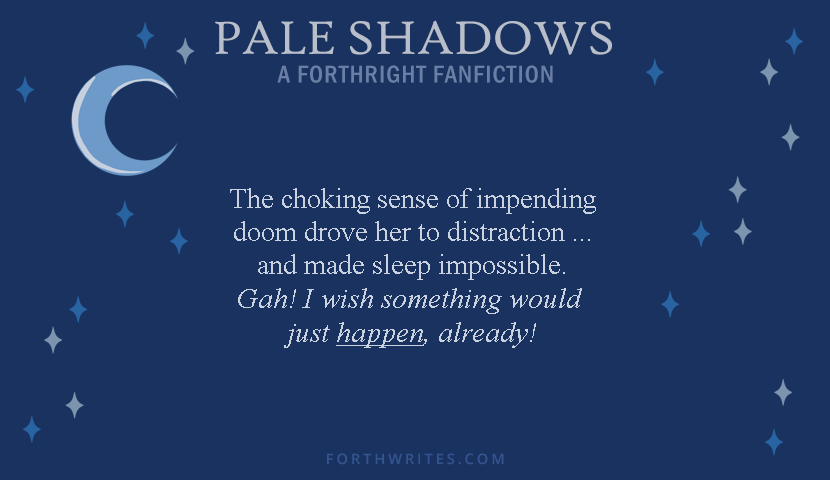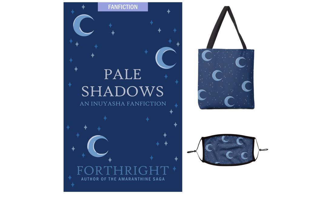 Tuesday’s Tote. Once a week, I’m posting a new fandom book cover to Goodreads & to the fanfic site. As an added bonus, the new pattern is available in my Threadless & TeePublic shopfronts. Totes, masks, backpacks, zipper bags, journals, and note cards are available. This week we’re adding an homage to Pale Shadows.