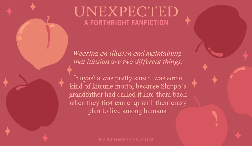 Apple for the Teacher. To help celebrate the return of Unexpected to “active” status, we’ve added an apple pattern to the shops. Up until now, I focused on giving fandom book covers to completed stories. Over the next few months, we’ll fit in ongoing serials, then work our way through odds-and-ends, right down to the last drabble. ::twinkle::