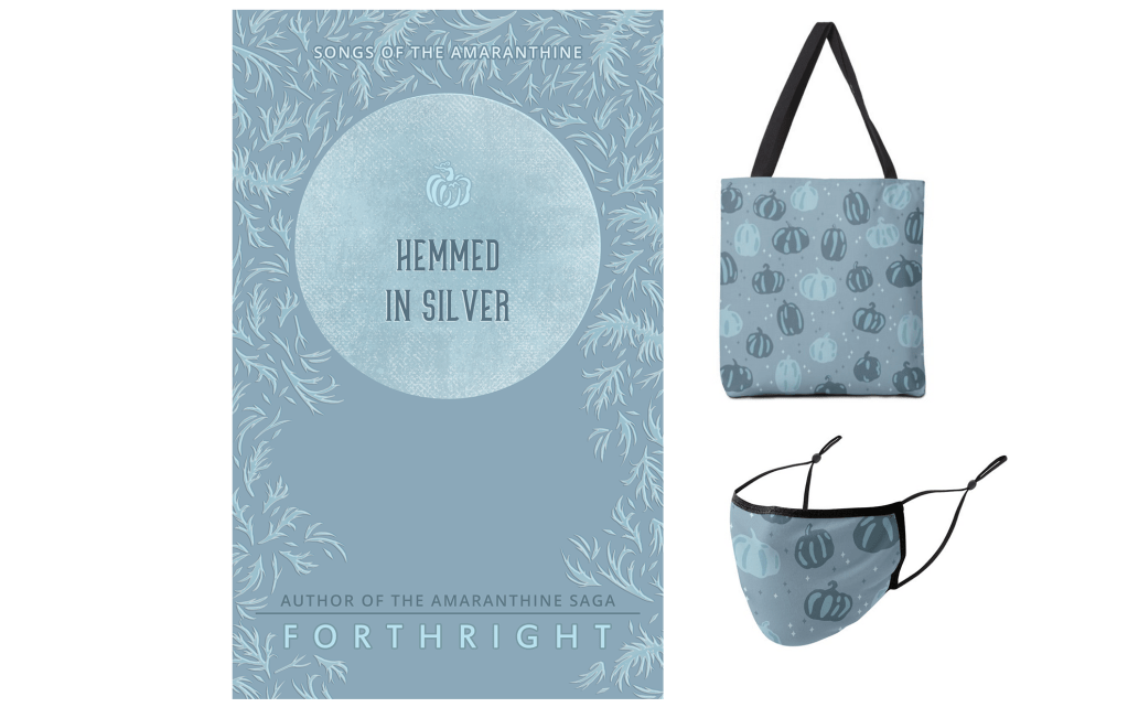 New Tote. Hemmed in Silver didn’t have a tote yet. Since it’s pumpkin season, we took that route as an homage to the cozies’ Frost Festival. The pattern’s available in my shops on a variety of merchandise, from notebooks to note cards, journals, and zipper bags.