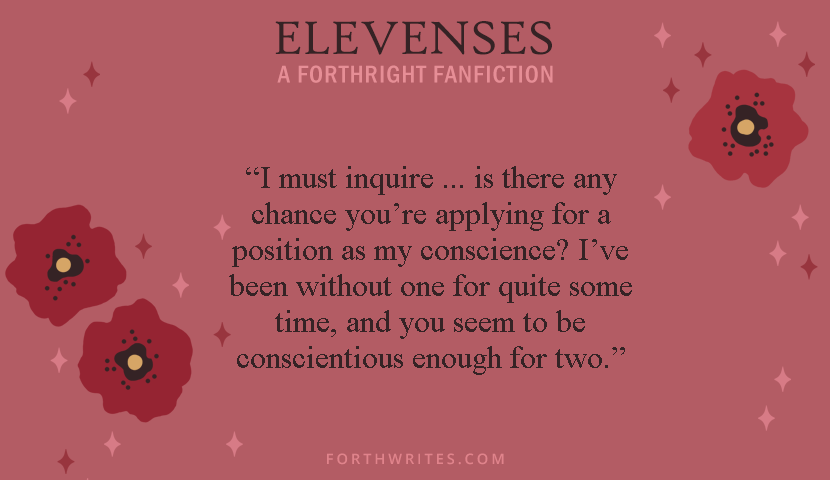 Darker than BLACK. When I started this fanfic, I was taking part in a drabble challenge community called fanfic_bakeoff as a part of Team Cake (pitted against Team Pie). Thanks to the multi-fandom nature of the group, I diverged from my first fandom (InuYasha) and began both this story & Guardian (for Spirited Away). Elevenses counts as a fix!it fic. Jack was so charming, I wanted to give him something … more.