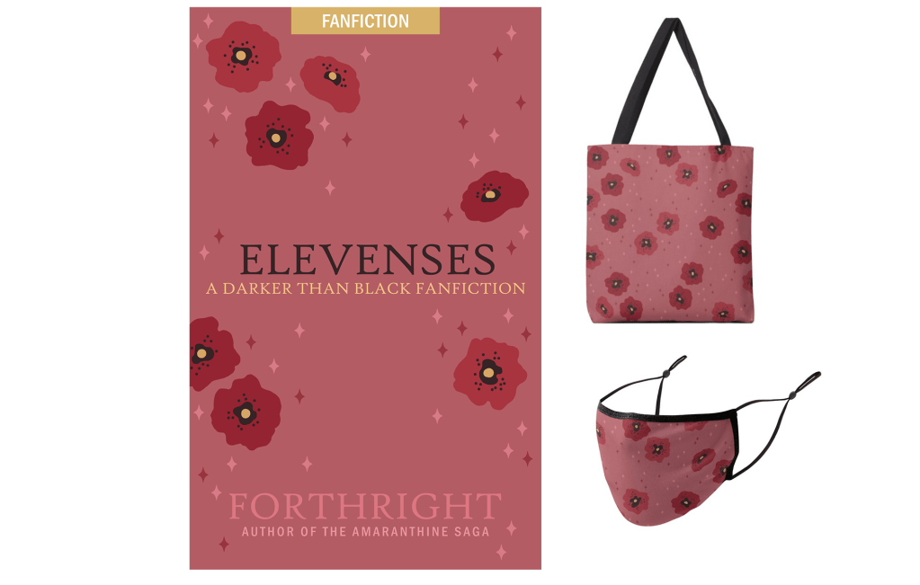 Tuesday’s Tote. Once a week, I’m posting a new fandom book cover to Goodreads & to the fanfic site. As an added bonus, the new pattern is available in my Threadless & TeePublic shopfronts. Totes, masks, backpacks, zipper bags, journals, and note cards are available. This week we’re adding an homage to Elevenses.