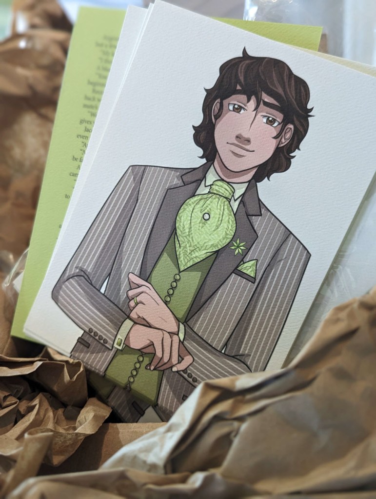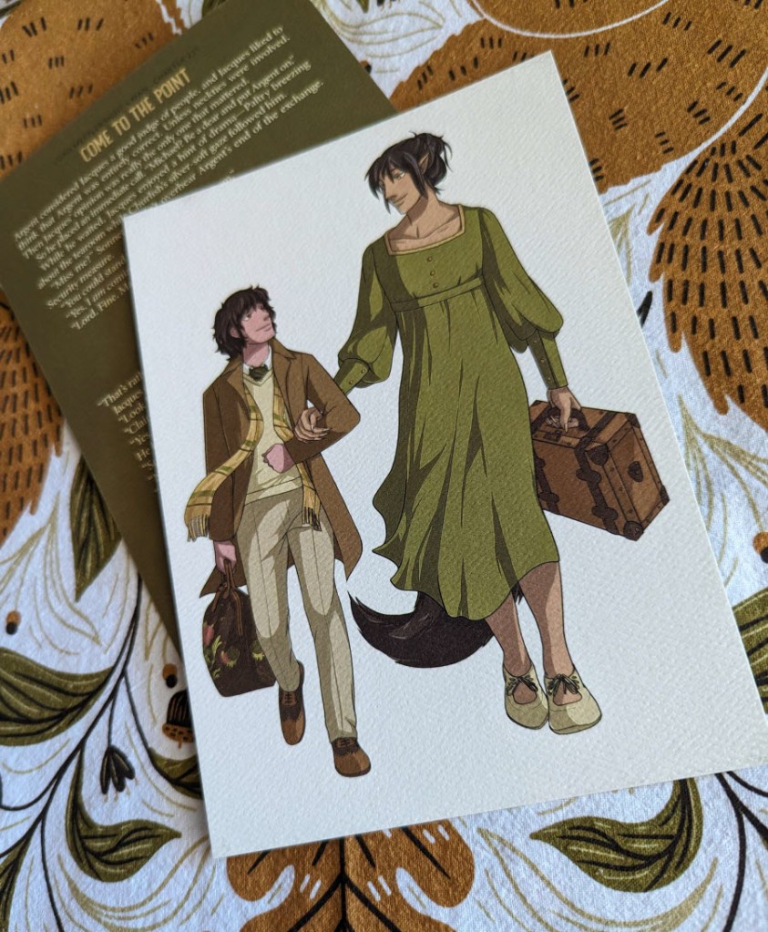 “Such a Gentleman” is featured on the art cards going out to patrons for the regularly scheduled monthly mailing. And for the equinox, the quarterly art card will include lettering of a favorite moment from Mikoto and the Reaver Village (Amaranthine Saga, Bk4). I’ll post pictures of those when they come from the printer. ::twinkle::