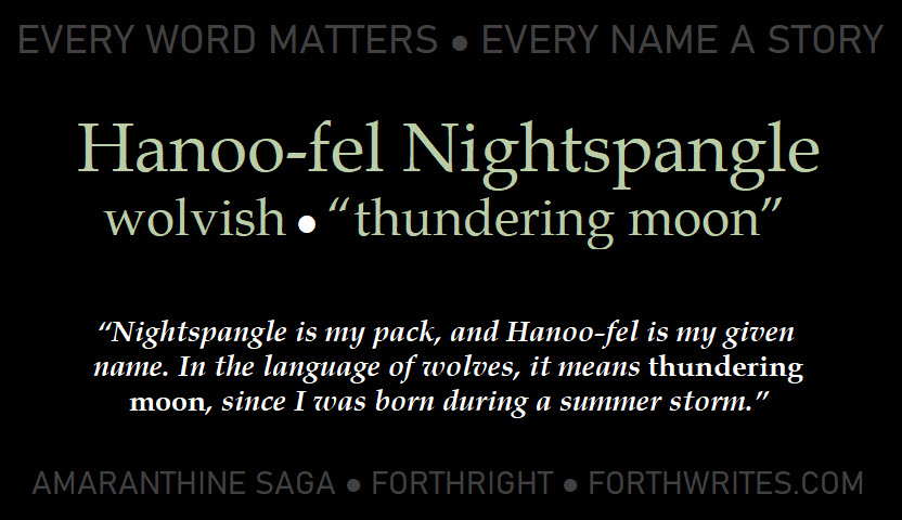 Doggish Naming Sense. The Amaranthine dog clans have a unique naming sense, which I sort of based on those quirky virtue names favored by early American colonists. Glint Starmark is the one who actually began the tradition by setting aside his wolvish birth name (Loor-ket), choosing meaningful names for his Kith children (like Path, Pace, and Trio), and giving his bondmate a doggish name (Radiance).
